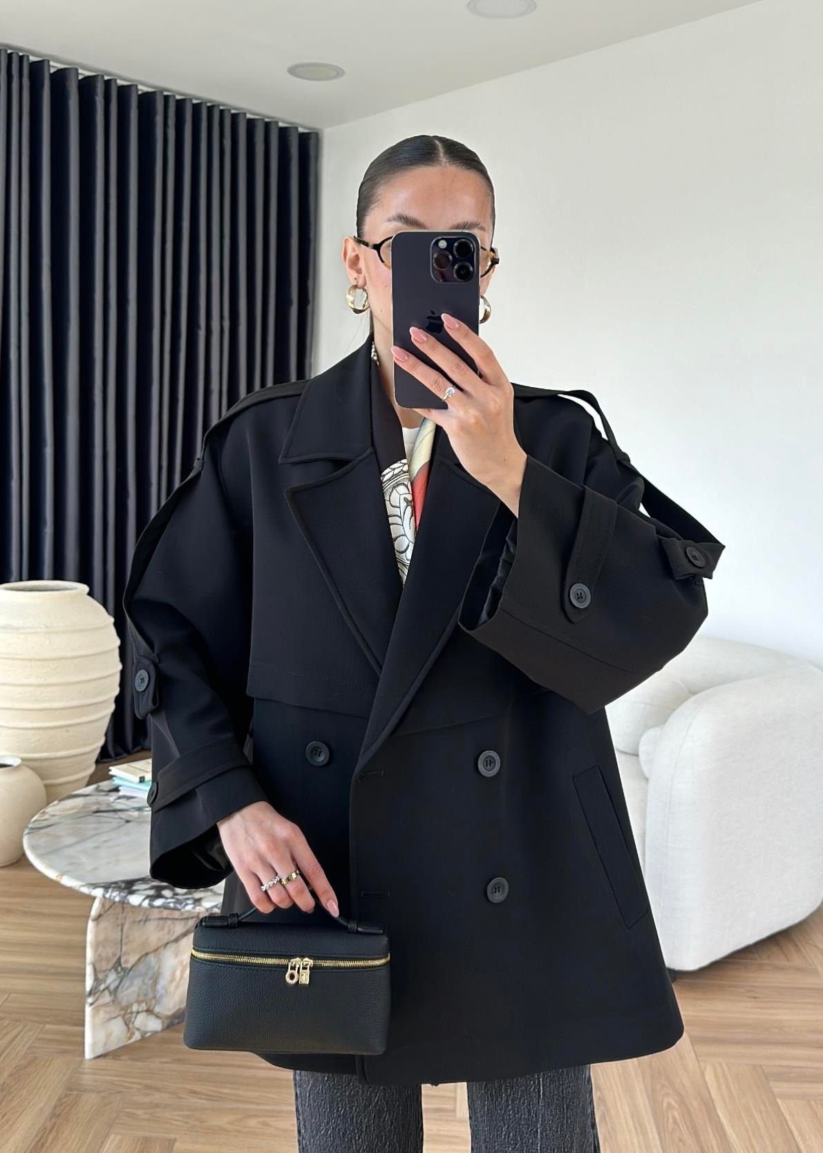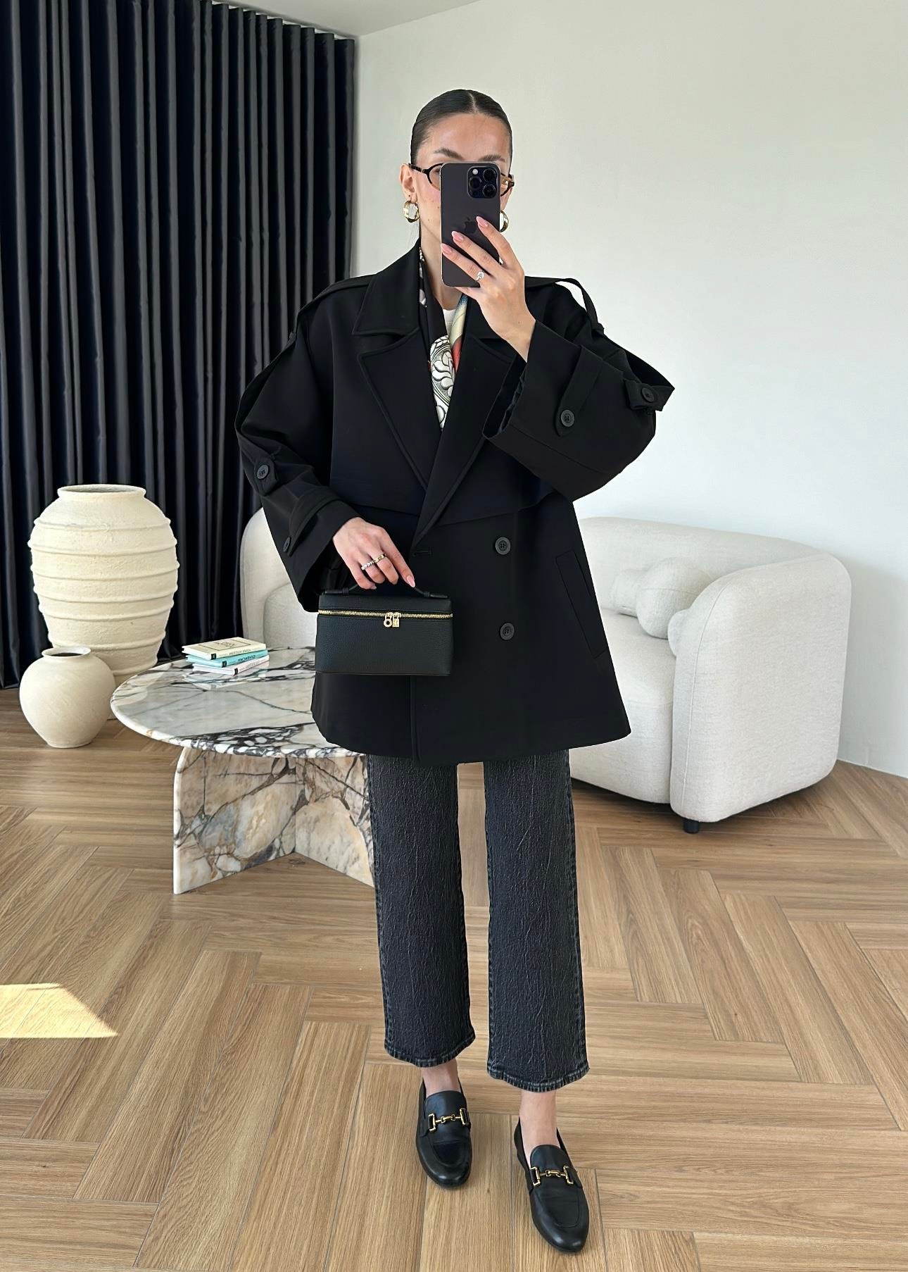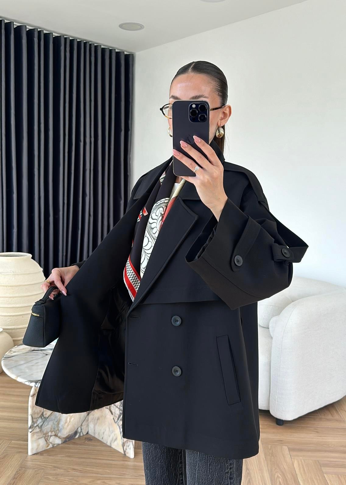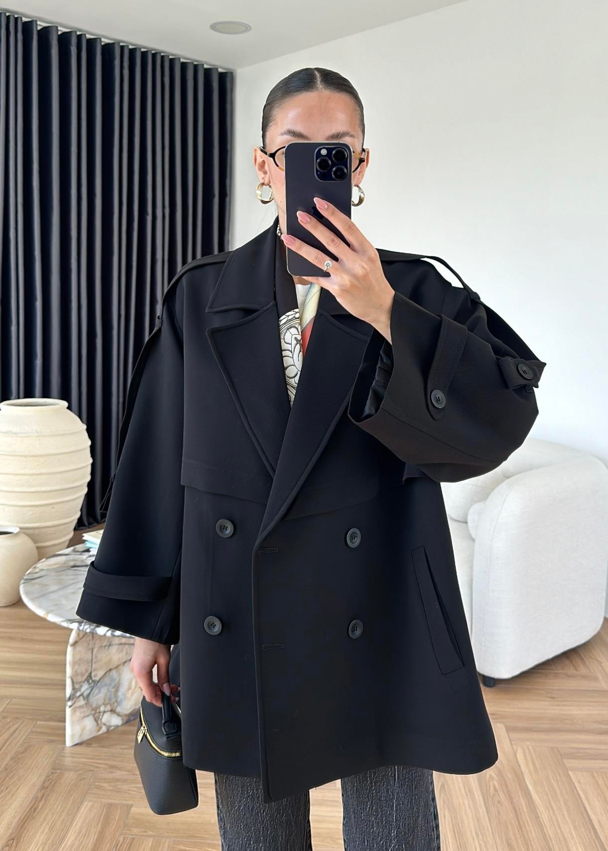 Rüzgarlıklı Ara Boy Trençkot SİYAH