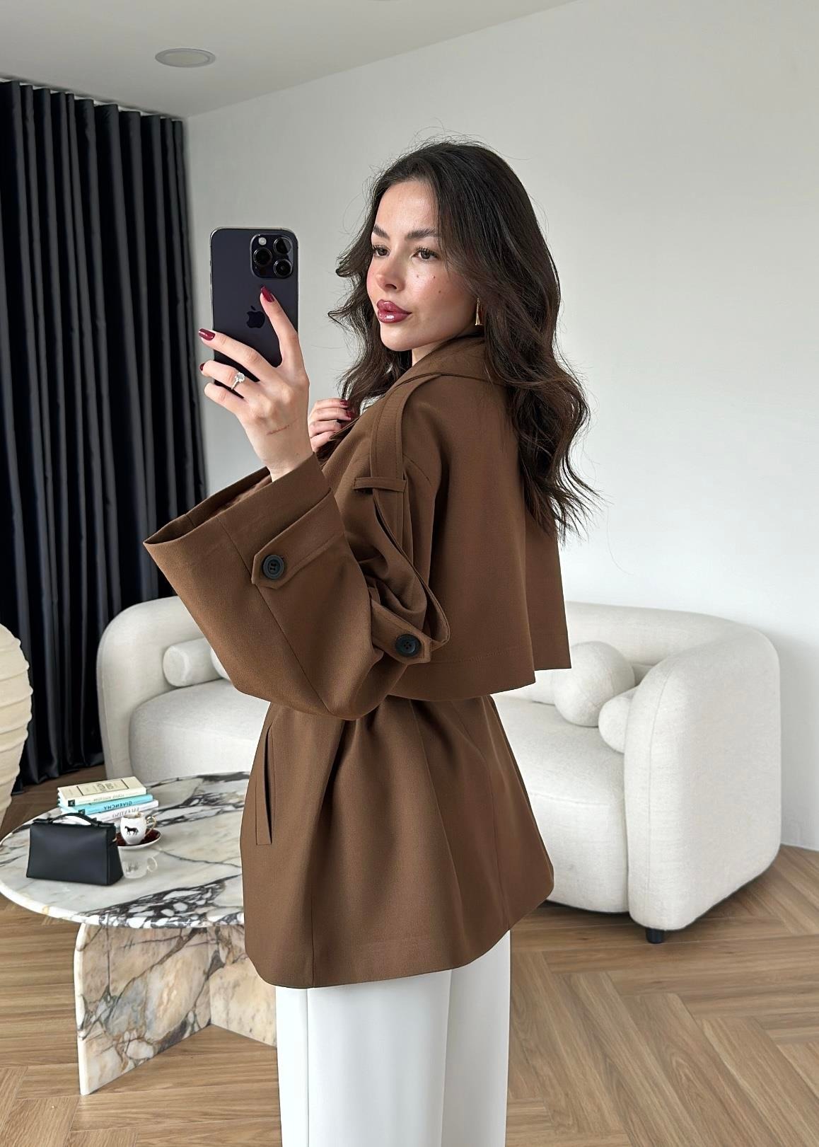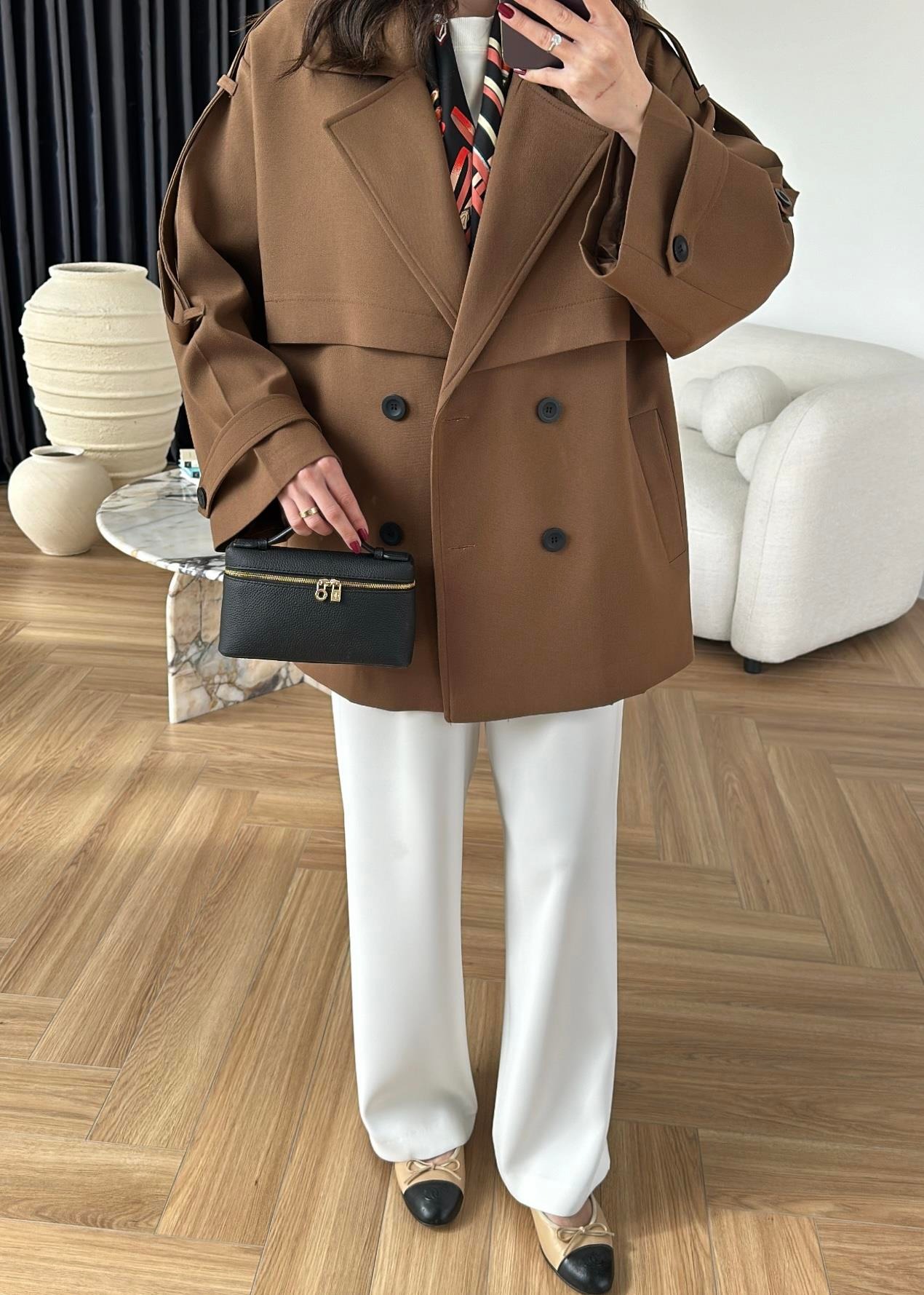 Rüzgarlıklı Ara Boy Trençkot AÇIK KAHVE