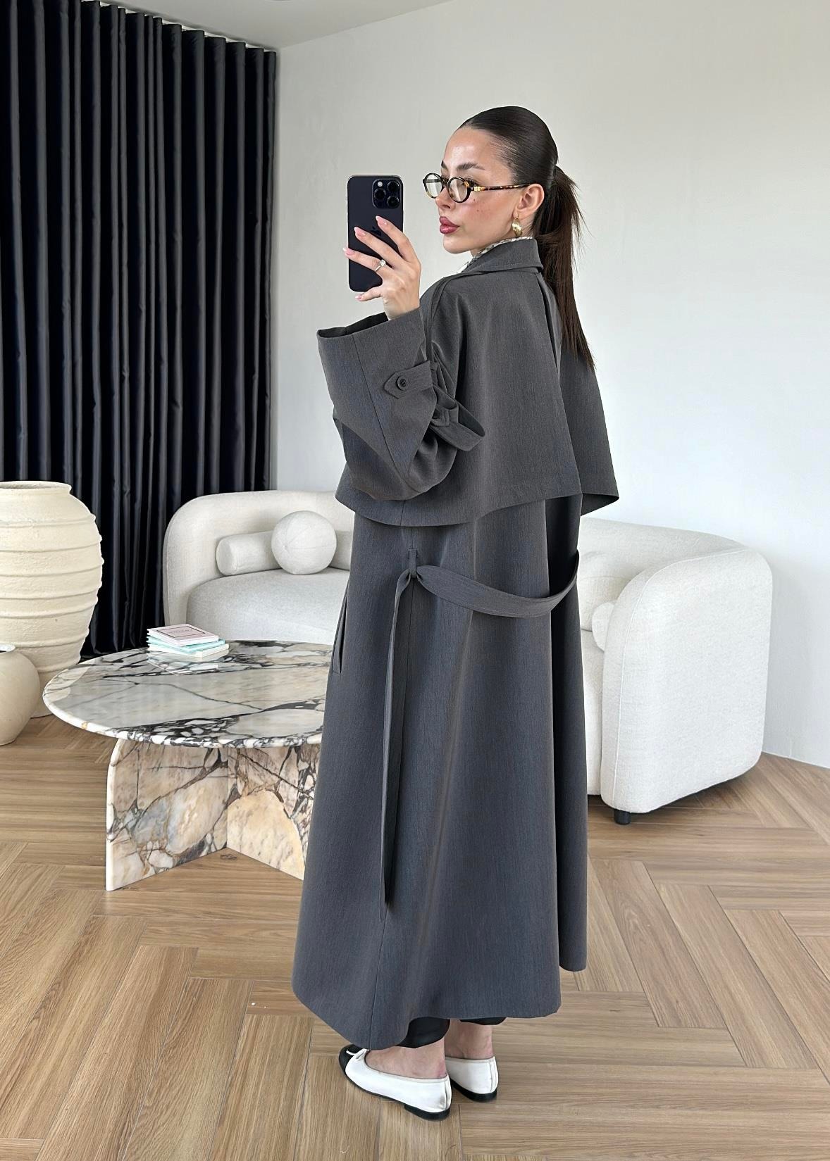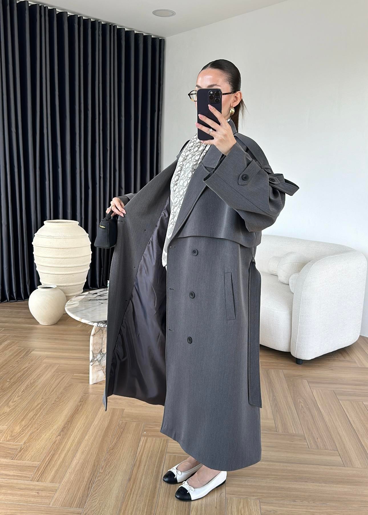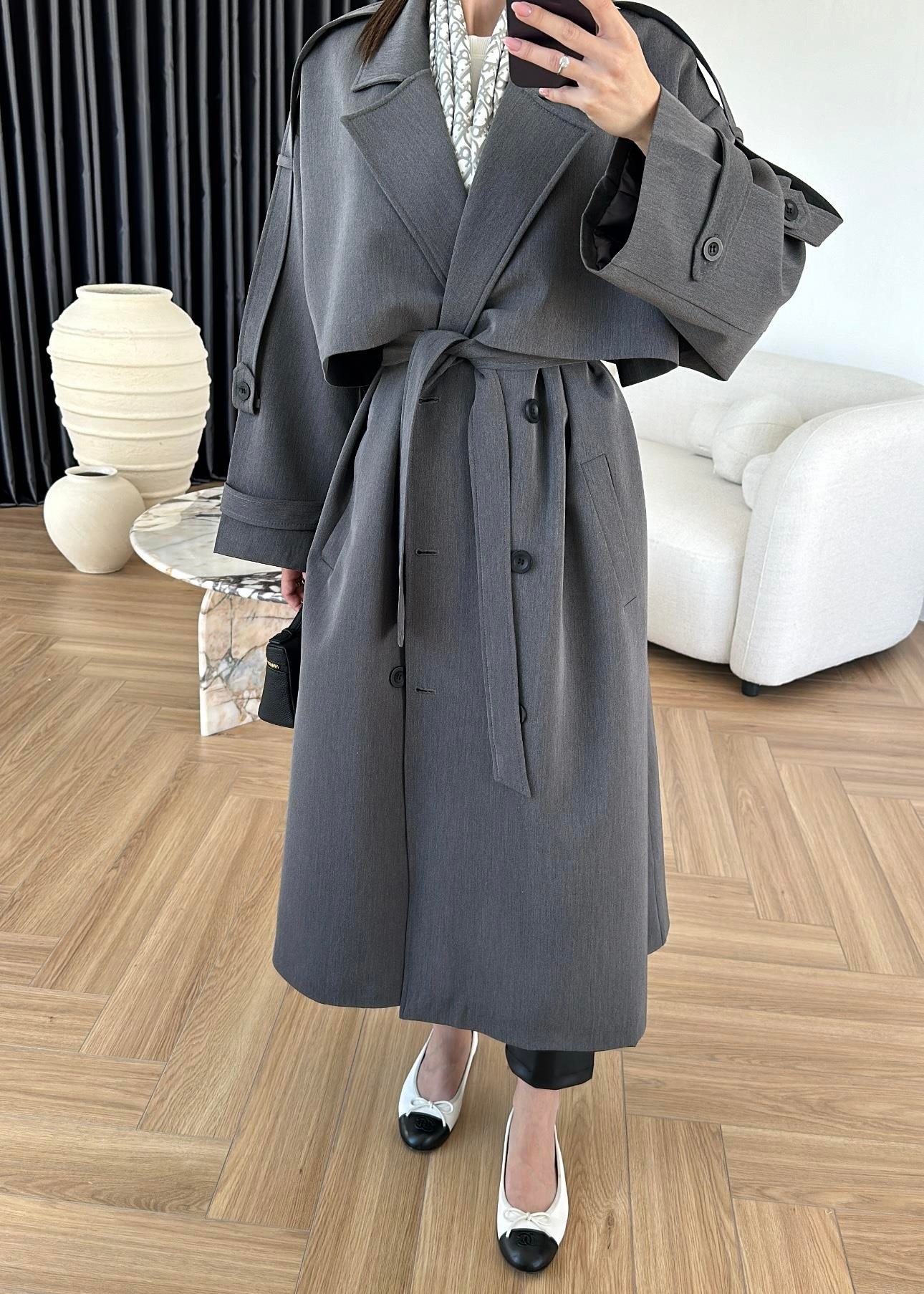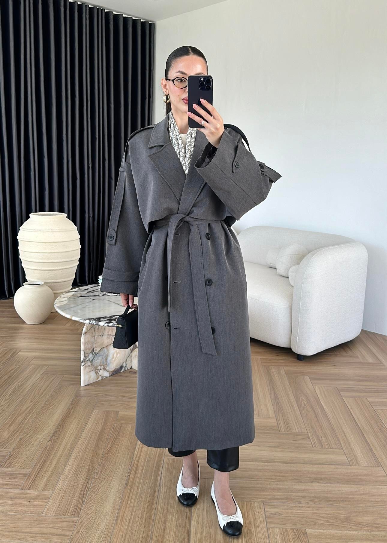 Omuzu Uzun Apoletli Trençkot ANTRASİT