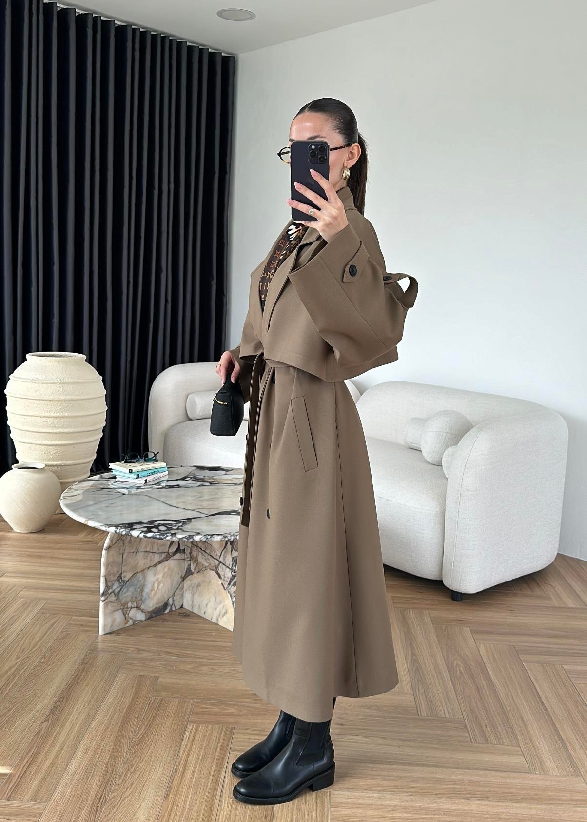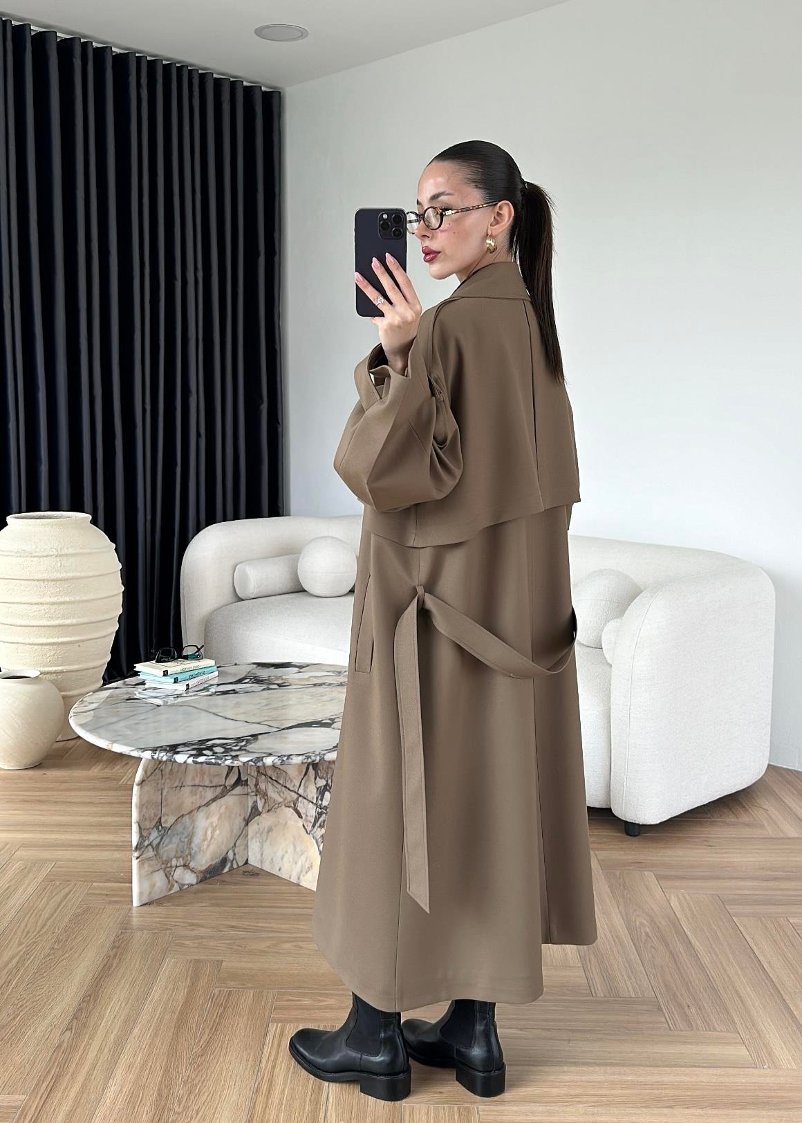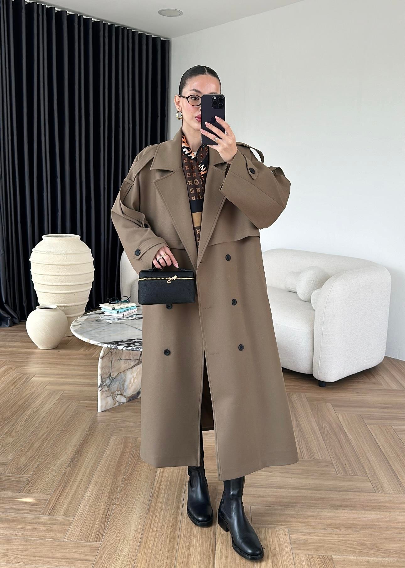 Omuzu Uzun Apoletli Trençkot SÜTLÜ KAHVE