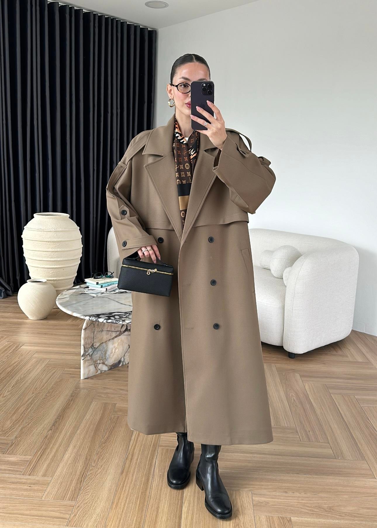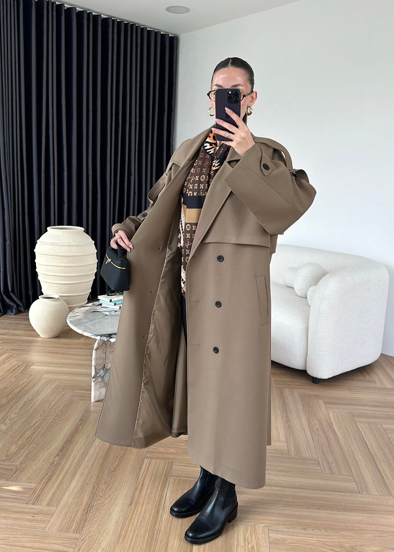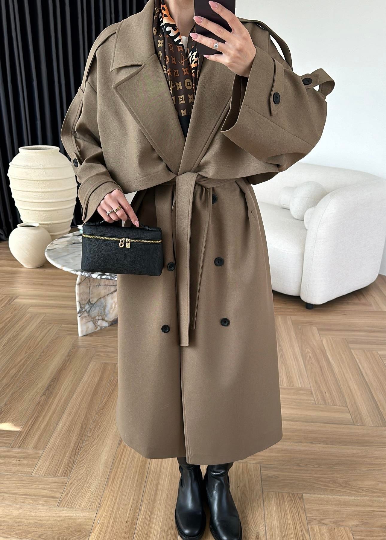 Omuzu Uzun Apoletli Trençkot SÜTLÜ KAHVE