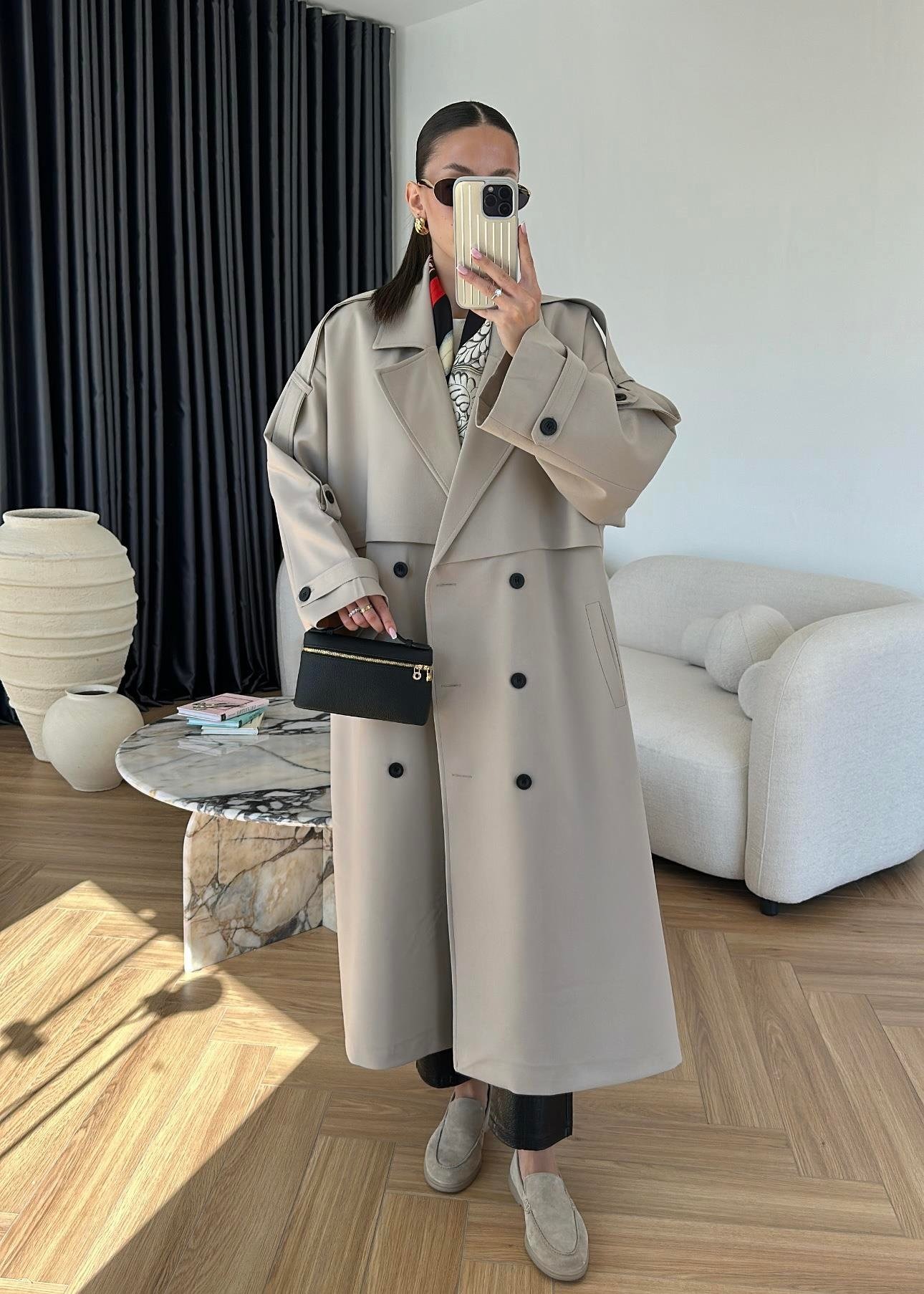 Omuzu Uzun Apoletli Trençkot TAŞ
