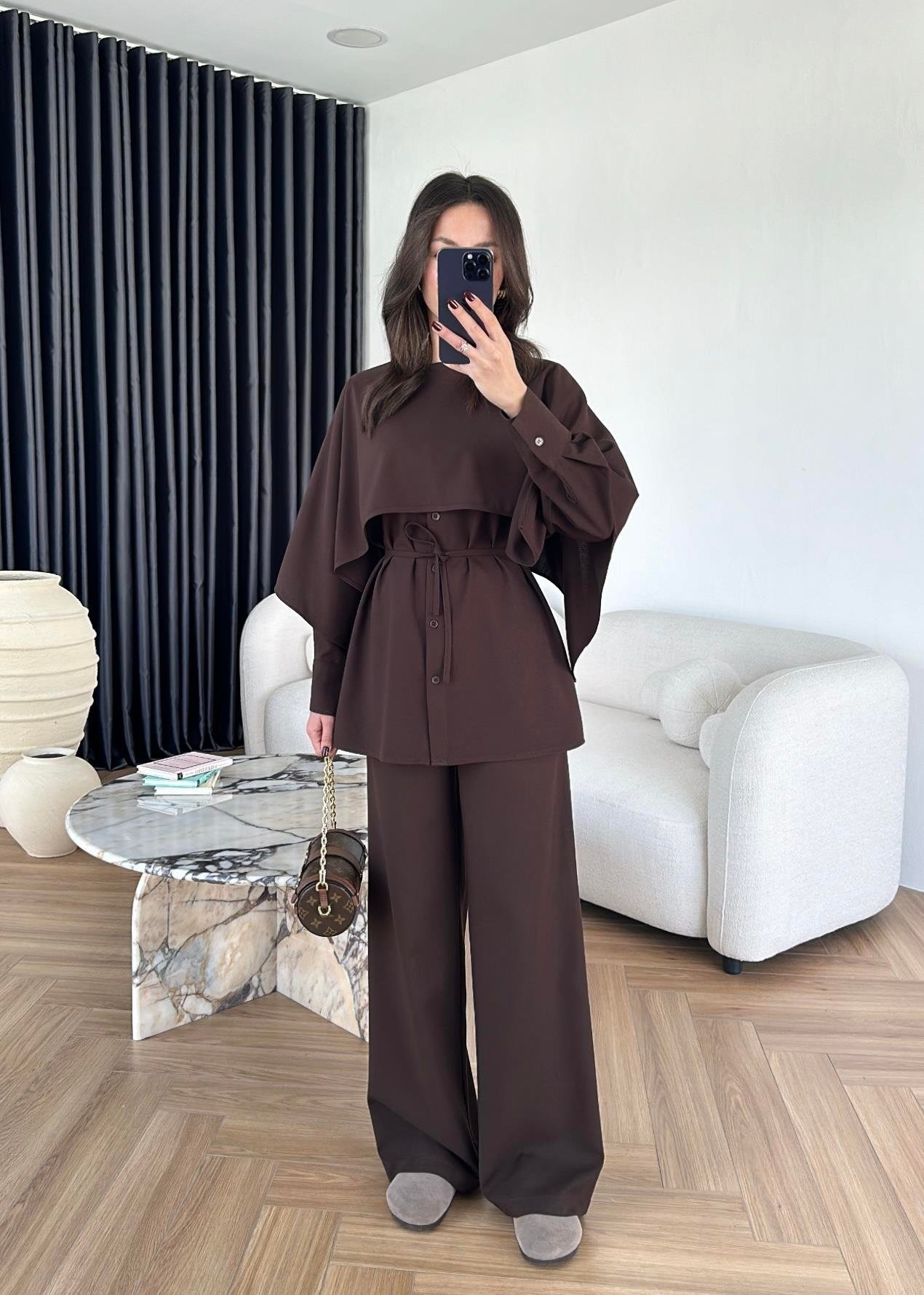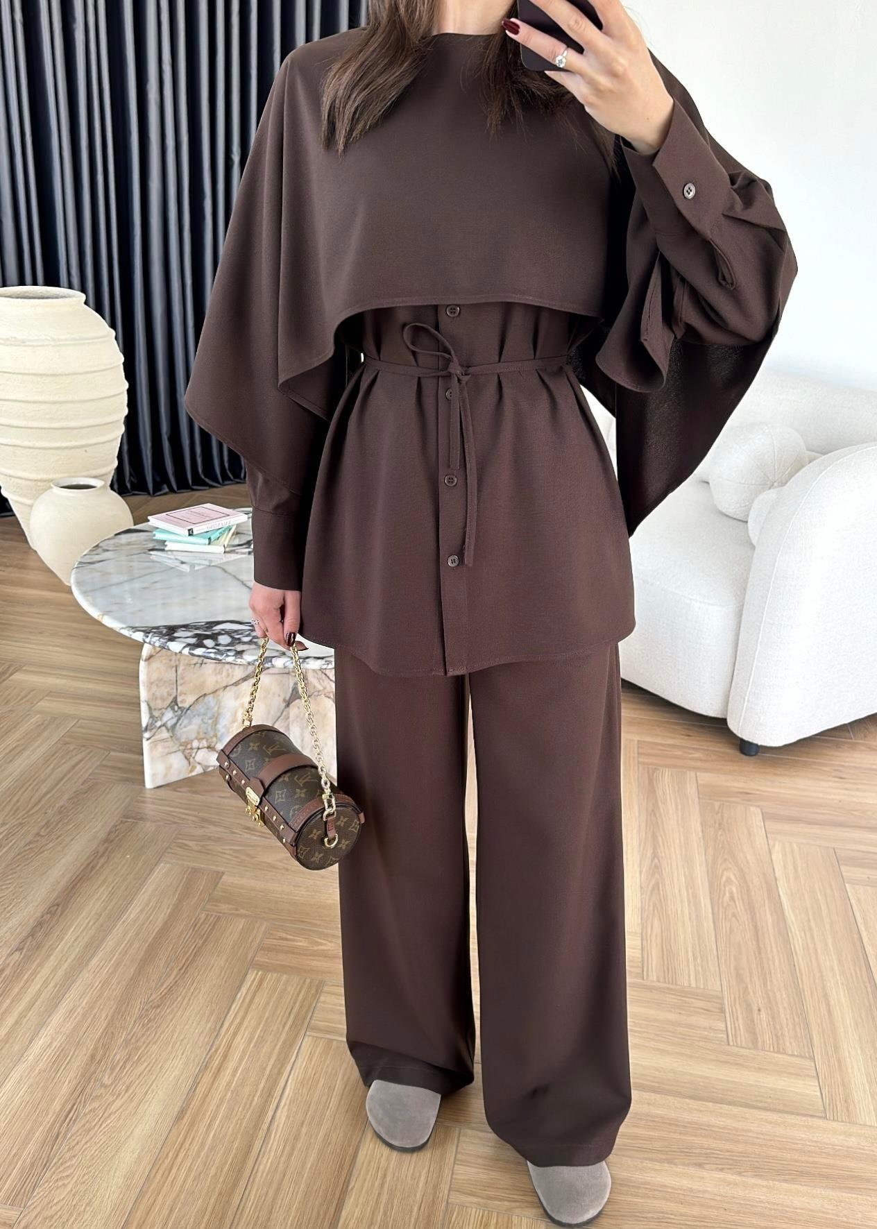 Pelerinli Palazzo Pantolonlu Takım ACI KAHVE
