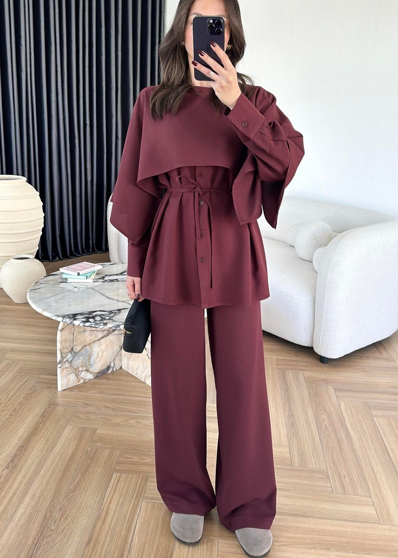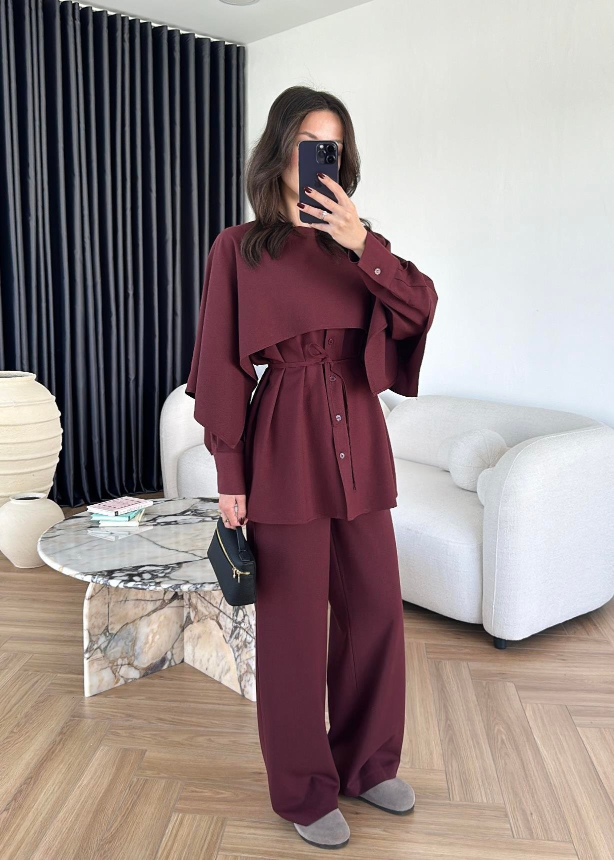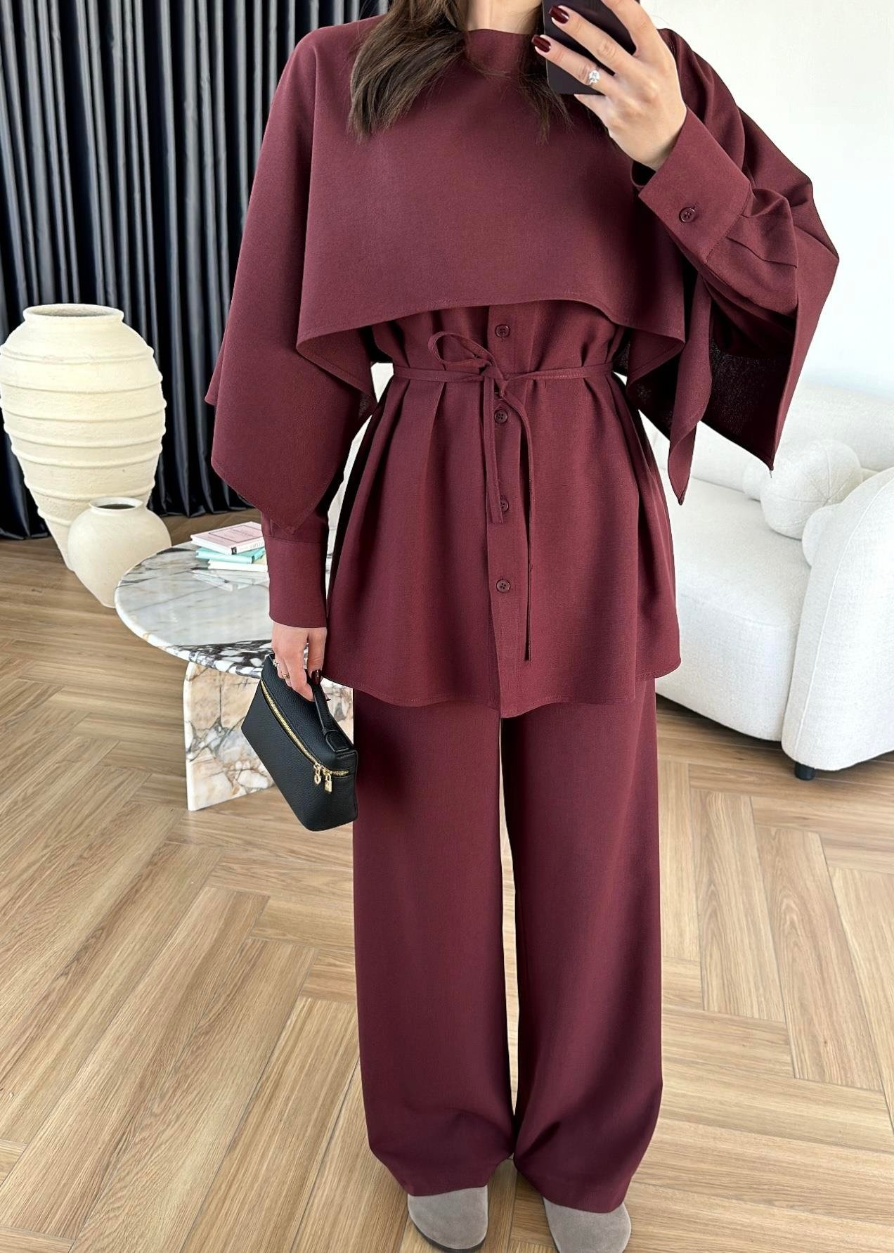 Pelerinli Palazzo Pantolonlu Takım BORDO