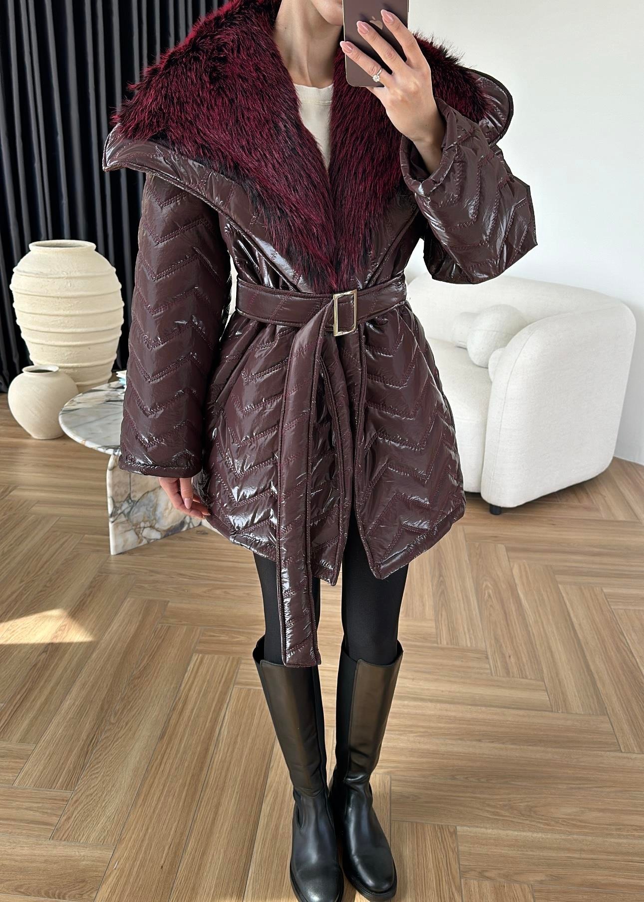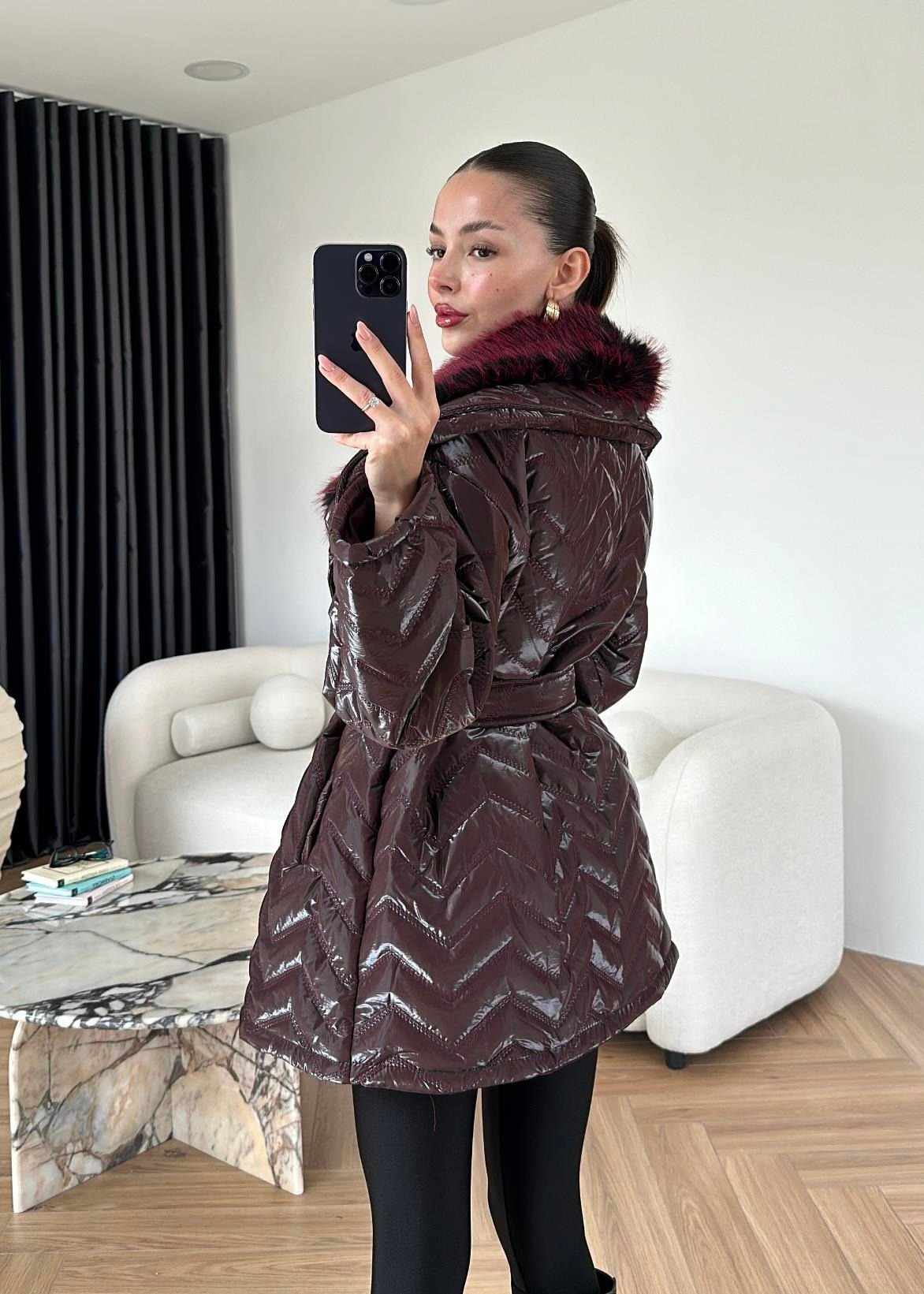 Rugan Kürk Detaylı Mont BORDO