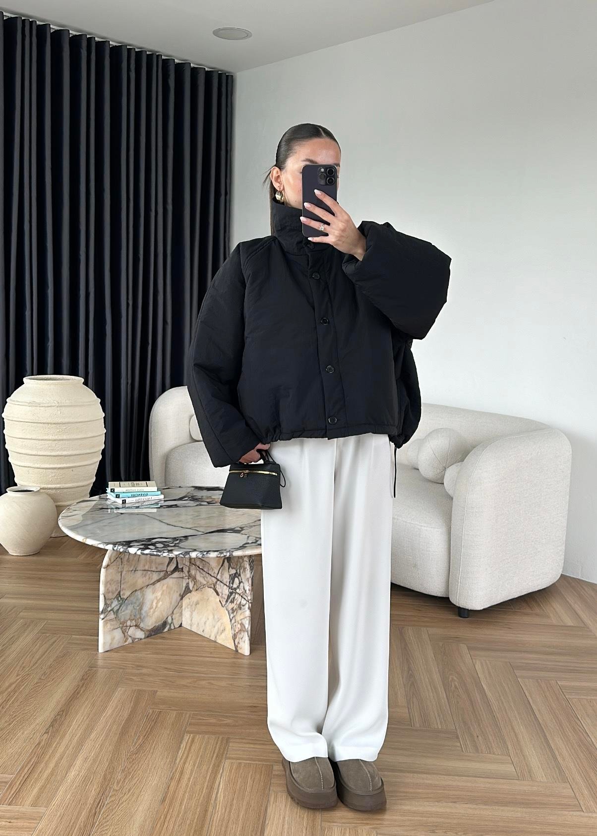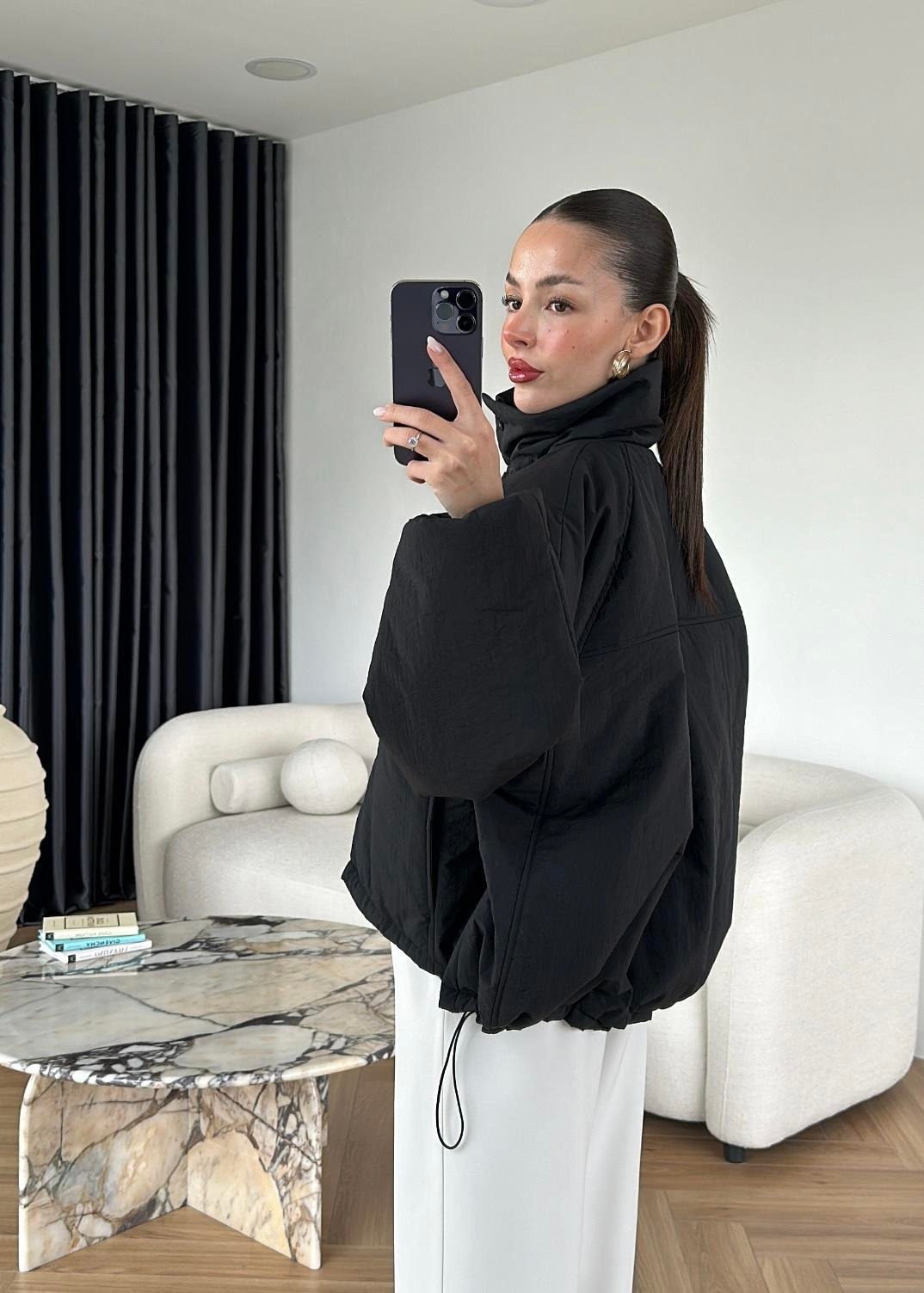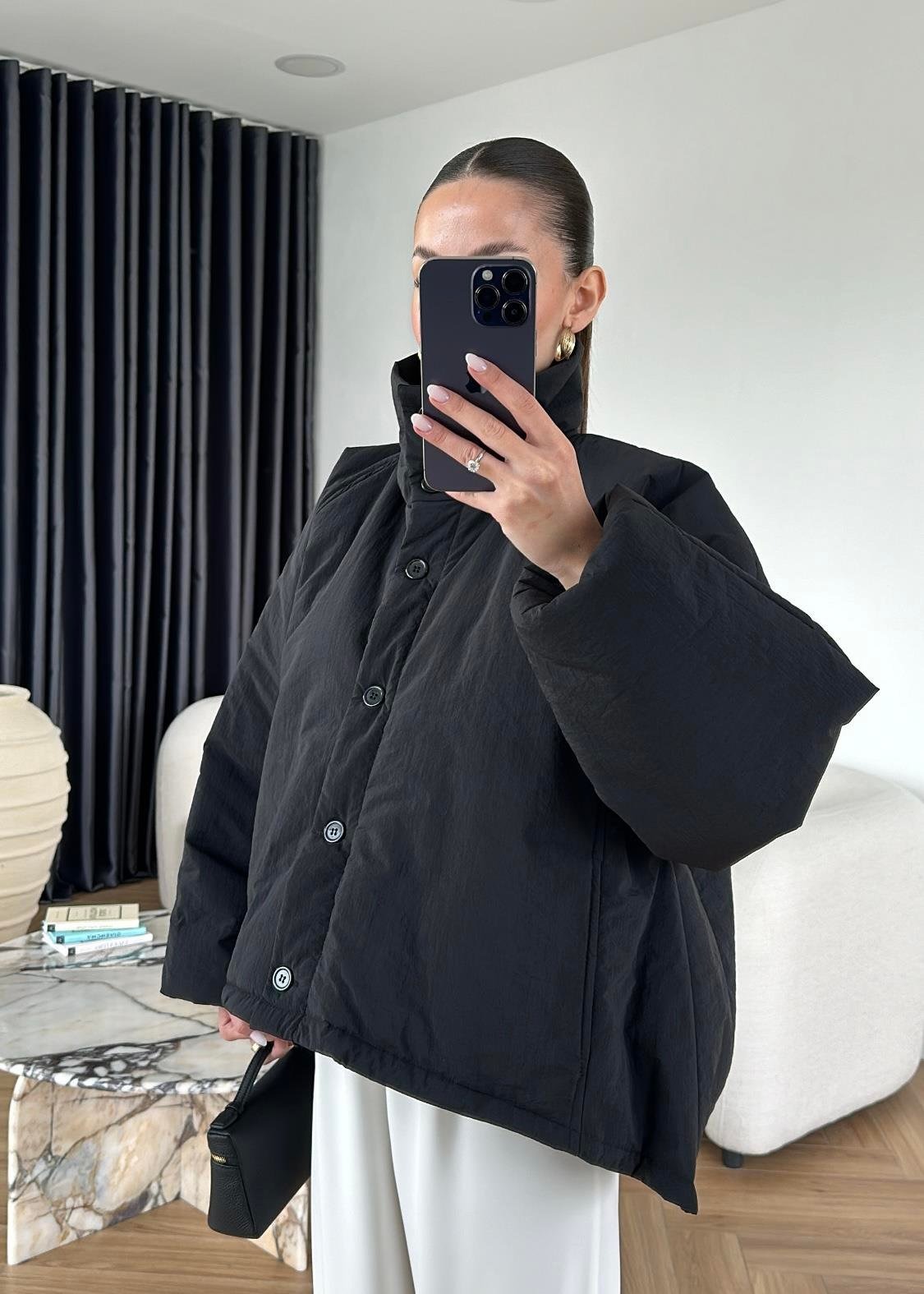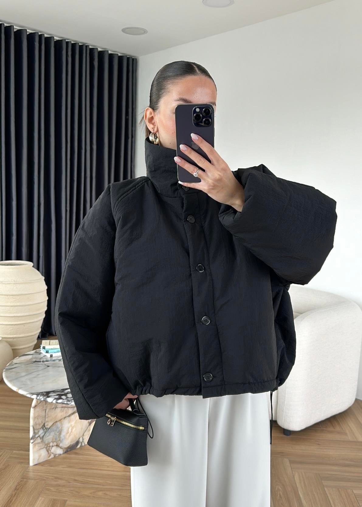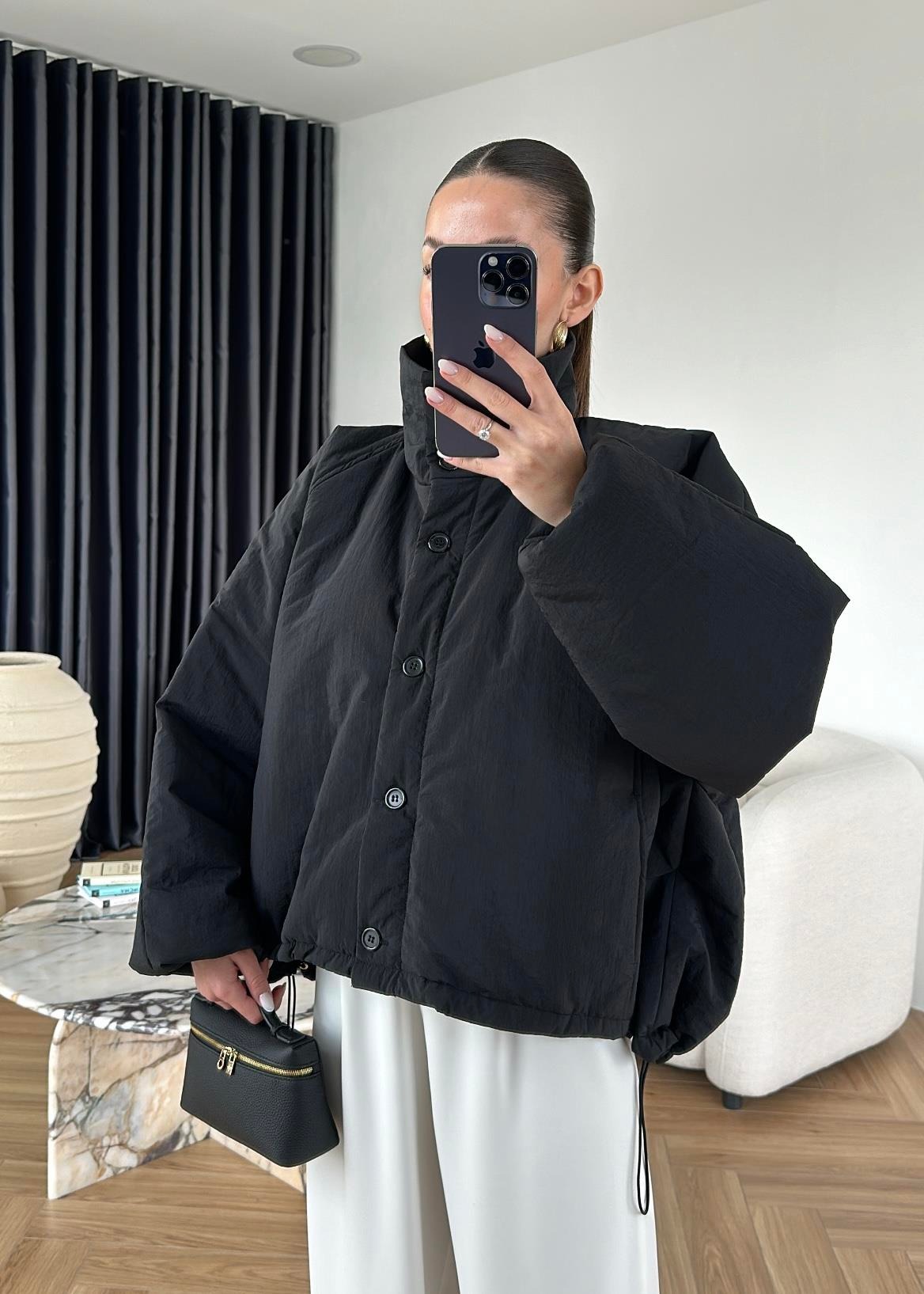 Dik Yakalı Arkası Uzun Mont SİYAH
