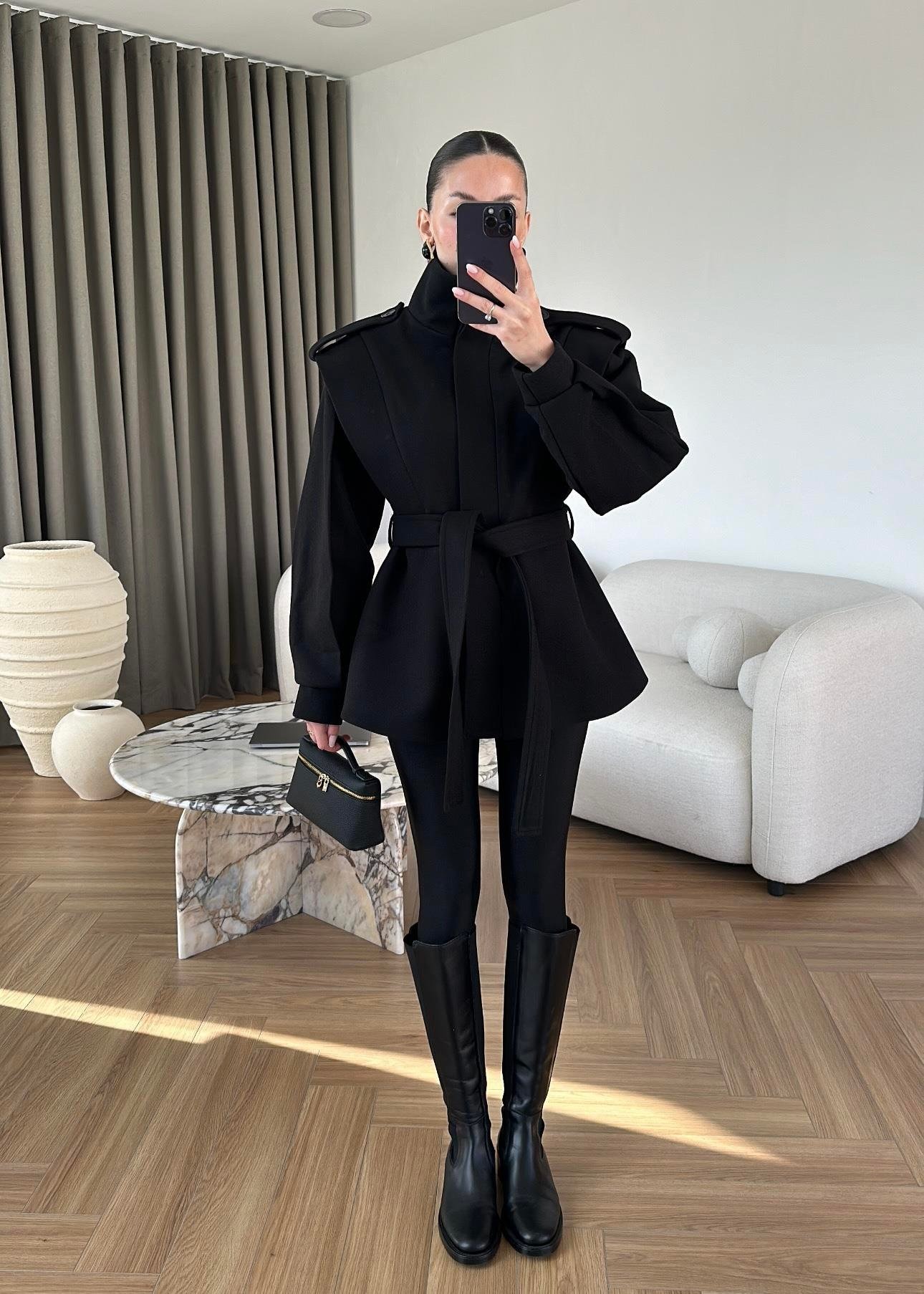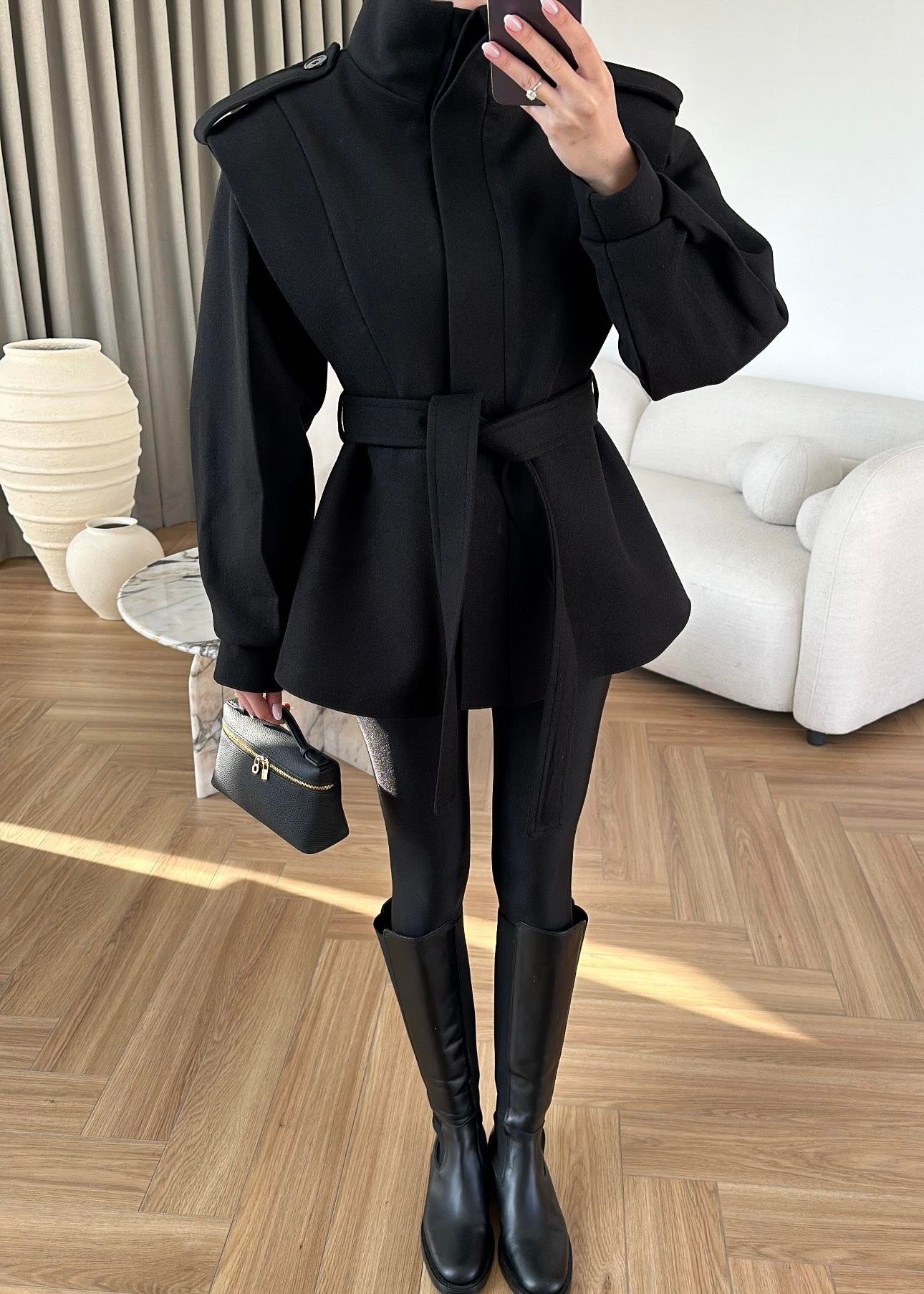 Volanlı Kaşe Kaban SİYAH