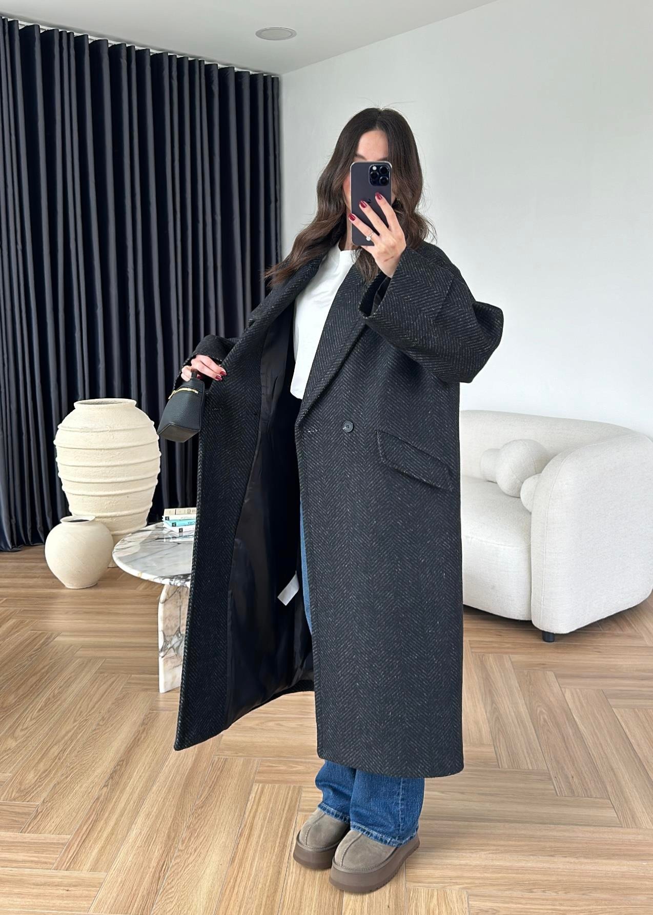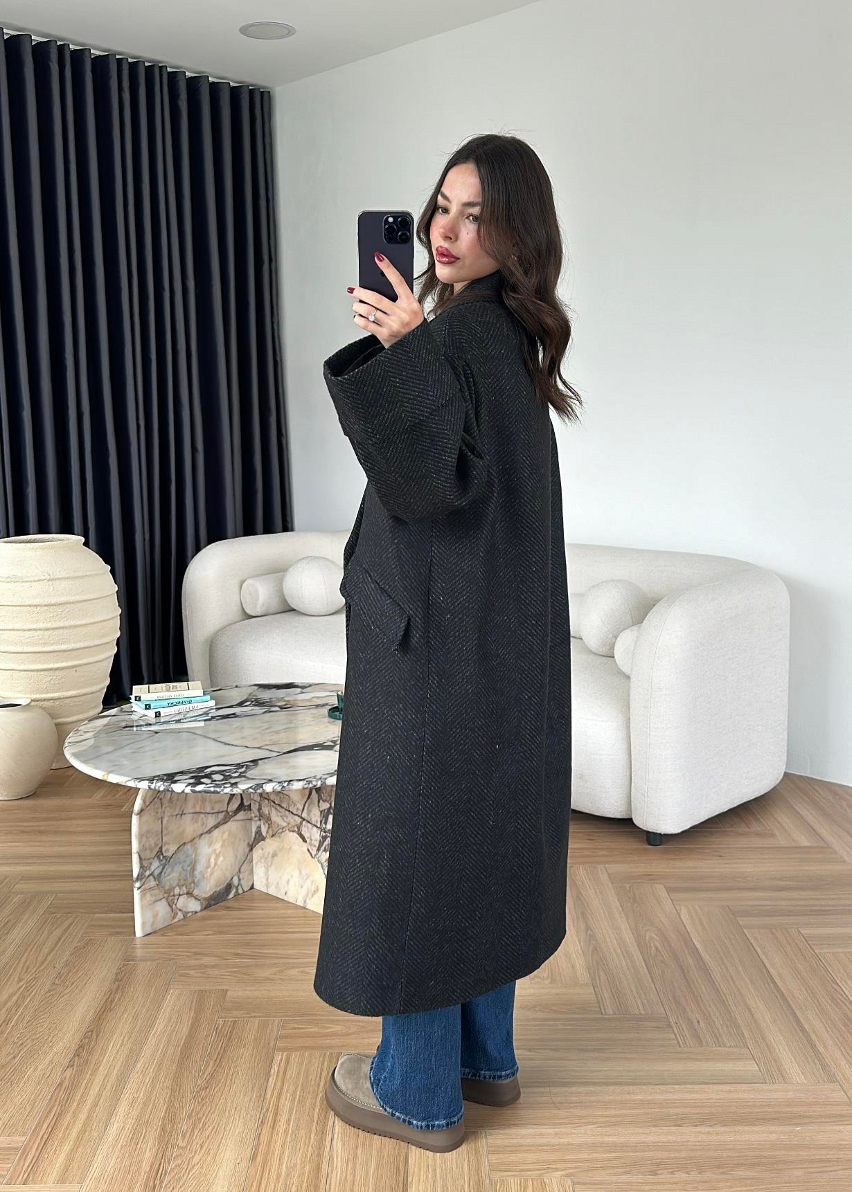 Balıksırtı Kruvaze Kaban SİYAH