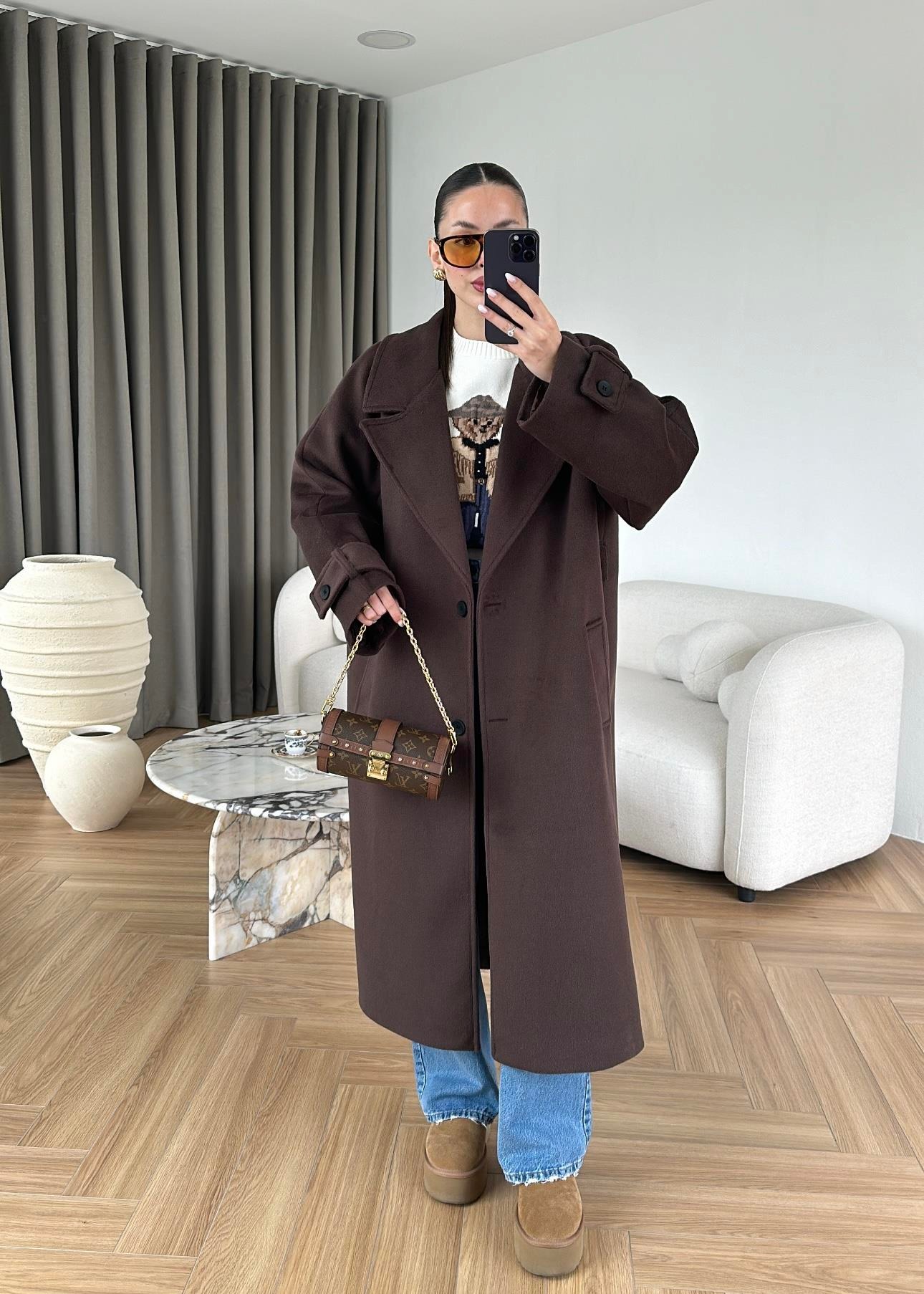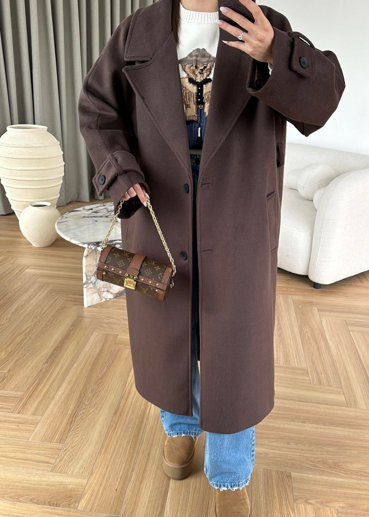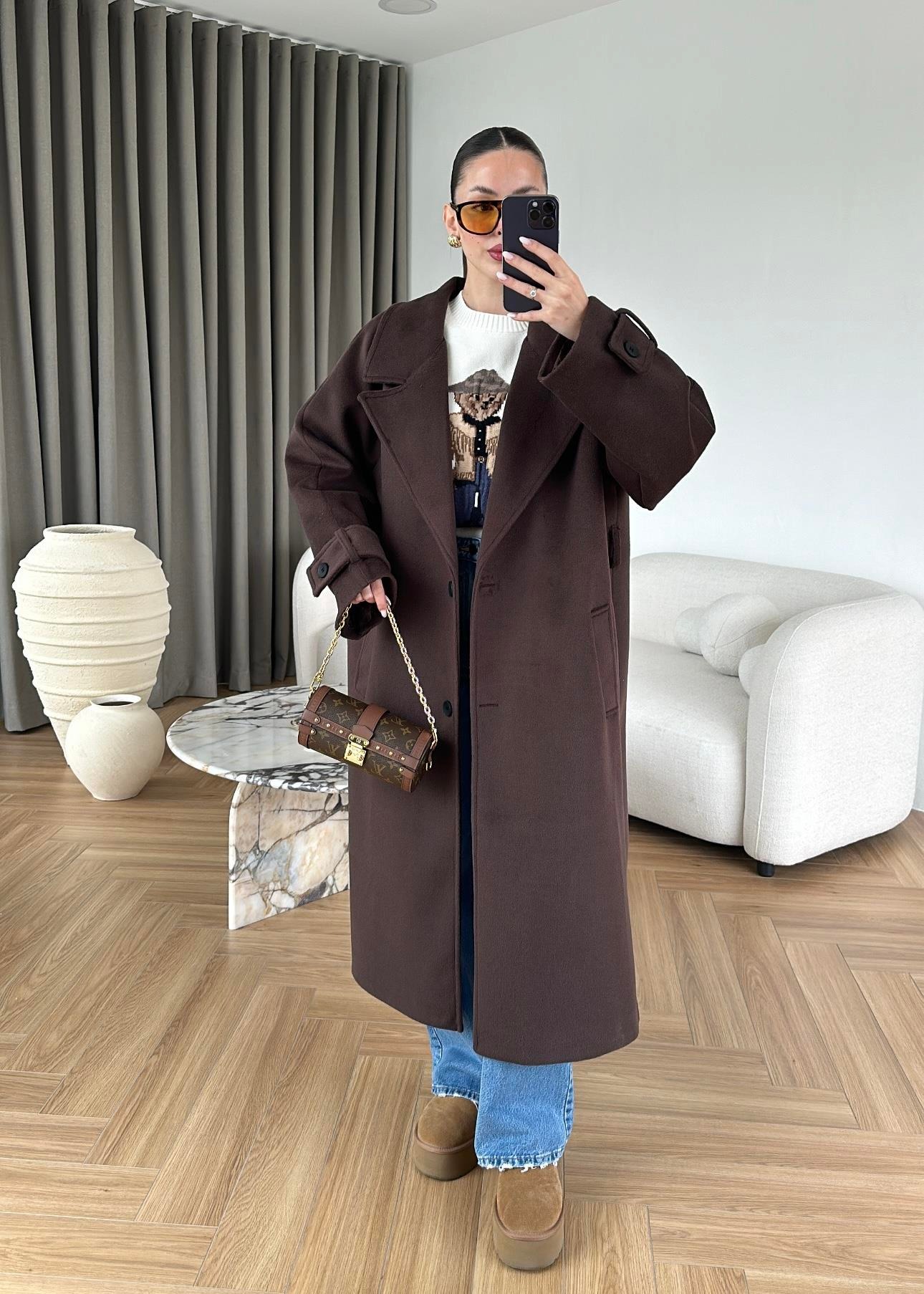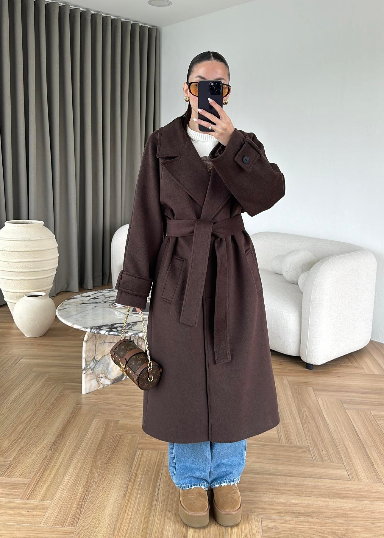 İki Düğmeli Kuşaklı Kaban ACI KAHVE