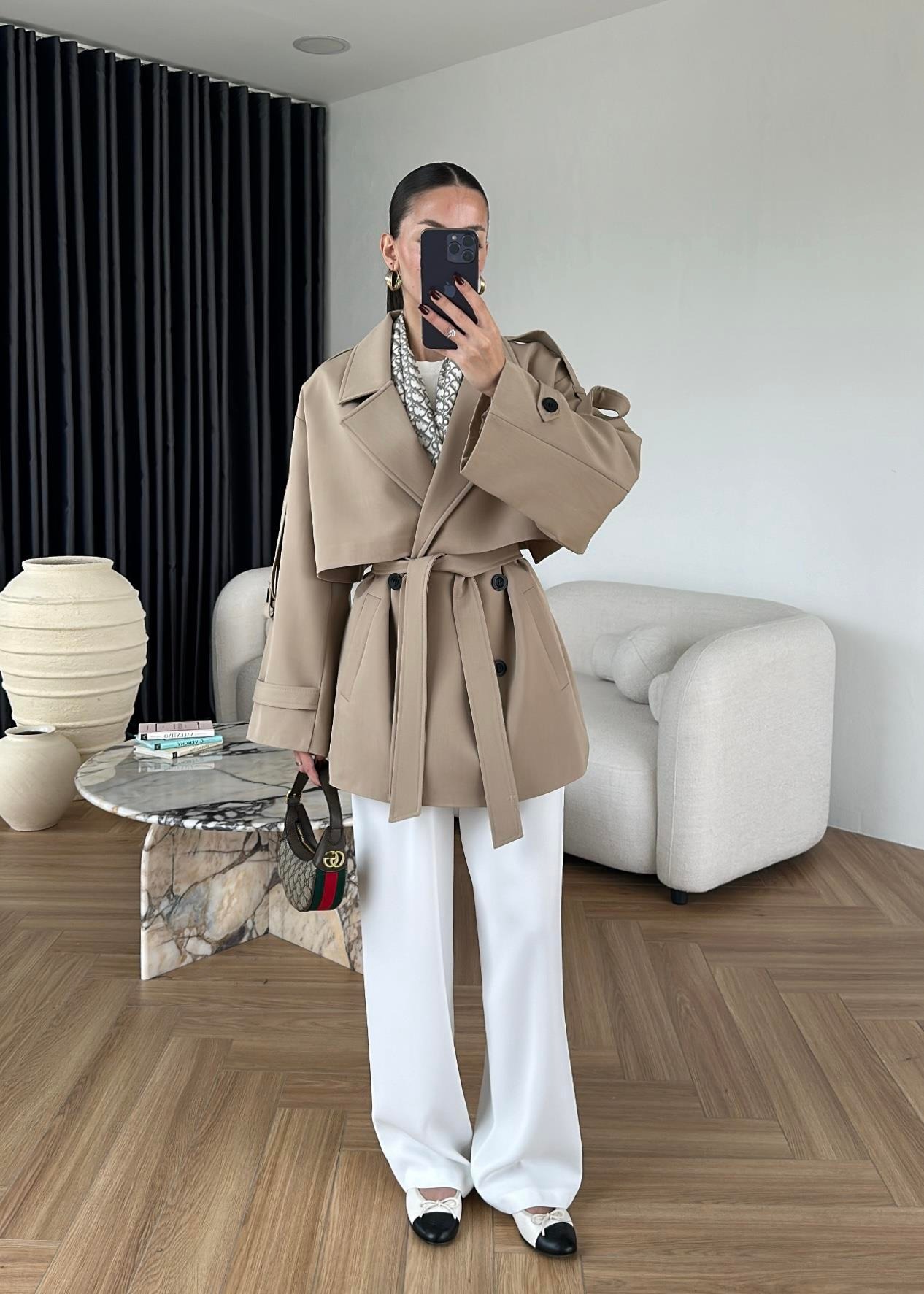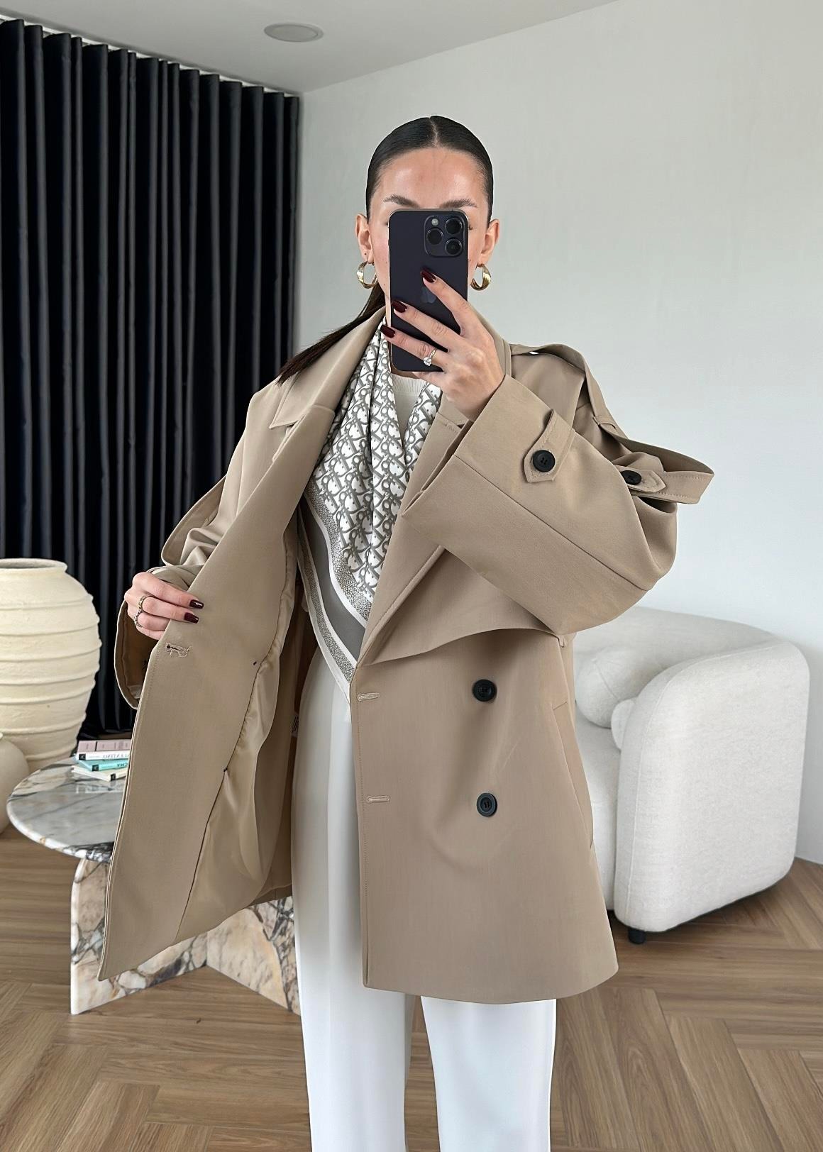Rüzgarlıklı Ara Boy Trençkot CAMEL