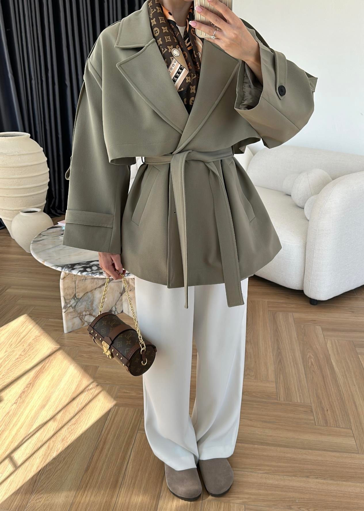 Rüzgarlıklı Ara Boy Trençkot HAKİ