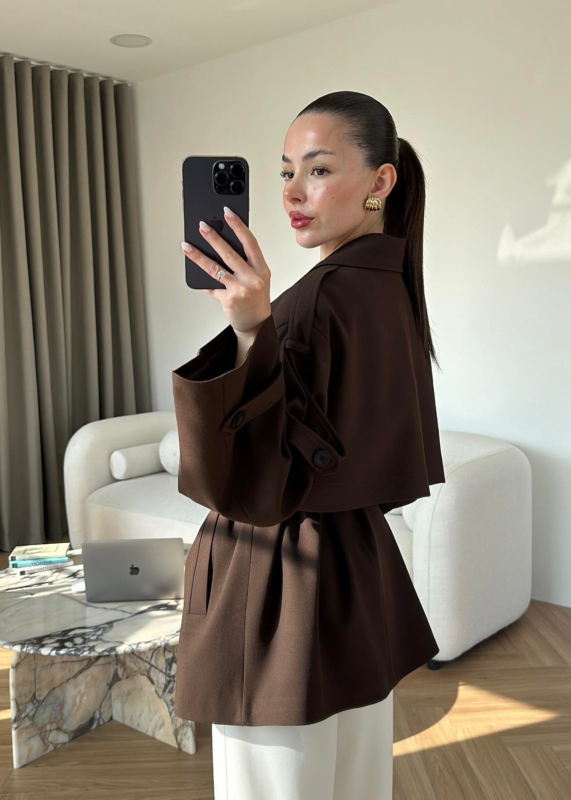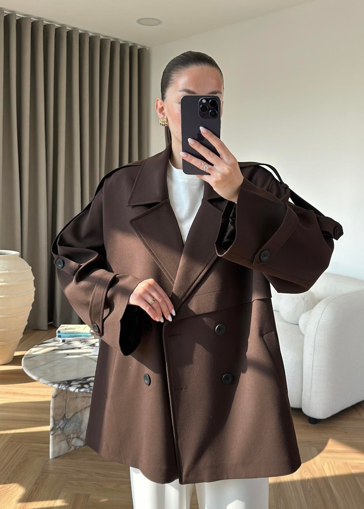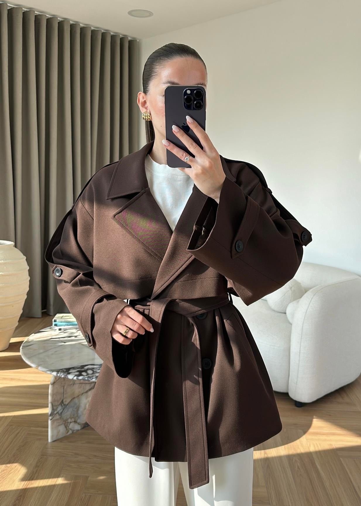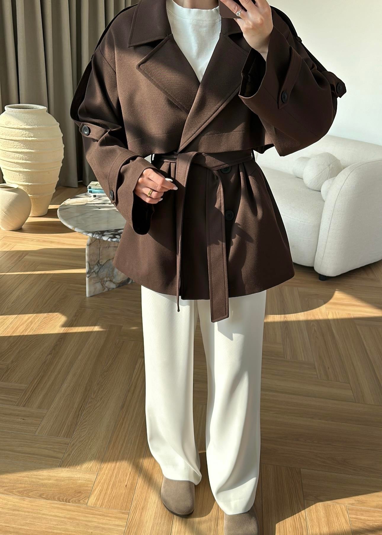 Rüzgarlıklı Ara Boy Trençkot KOYU KAHVE