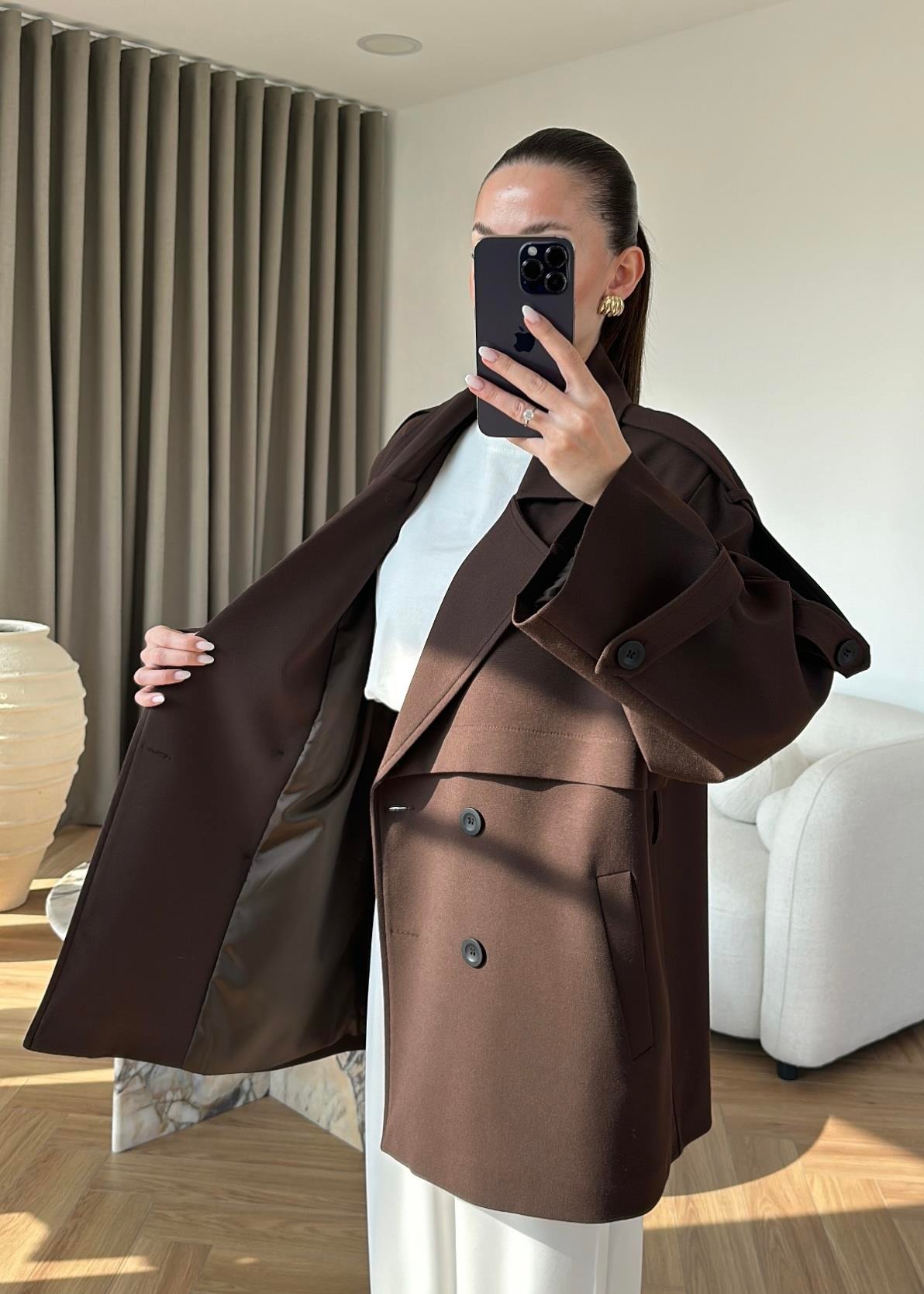 Çekimde S Beden kullanılmıştır,Astarlı kuşaklı ve ceplidir.